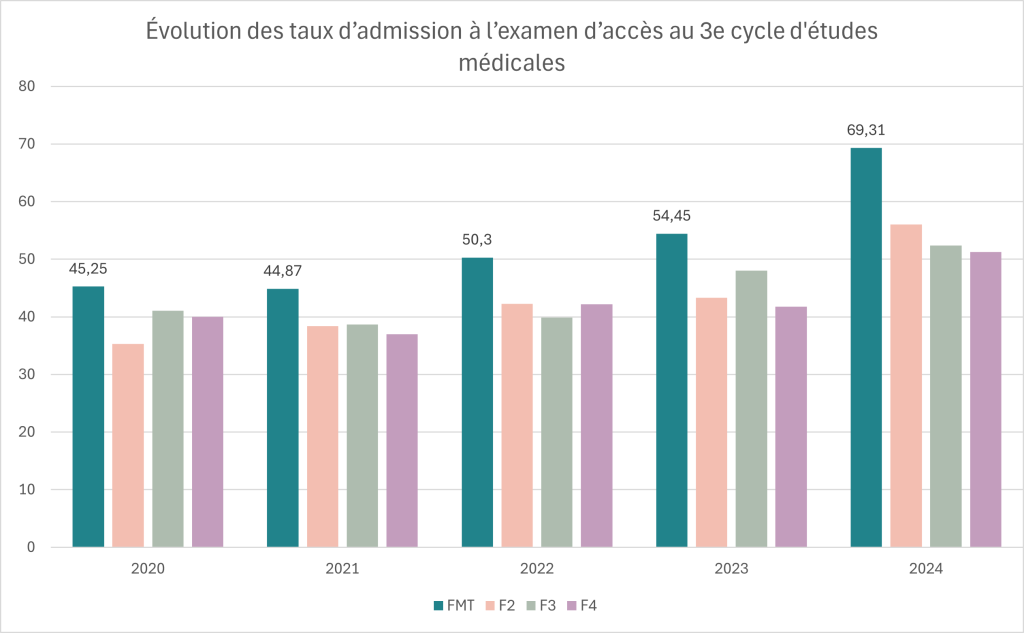 - 96,9% des étudiants de la FMT ayant passé le concours d’accès au TCEM l’ont réussi.