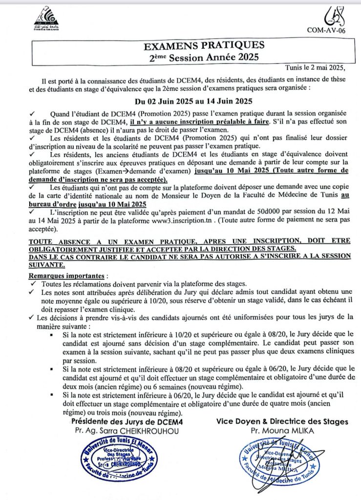 05 Mai Communiqué examens pratiques 2ème session 2025 Publié à 12:33h in Actualités, Communiqués par FMT Share