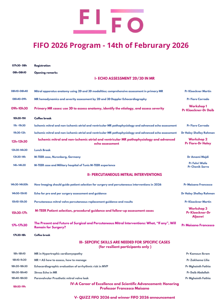 The second edition of the Functional Imaging and Four‑D Advanced Echocardiography Course (FIFO 2026), taking place on February 14th, will be dedicated to an in‑depth focus on the Mitral Valve.