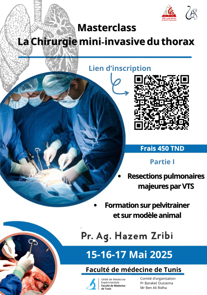 La faculté de médecine de Tunis organise une masterclass intitulée : la chirurgie mini-invasive du thorax.