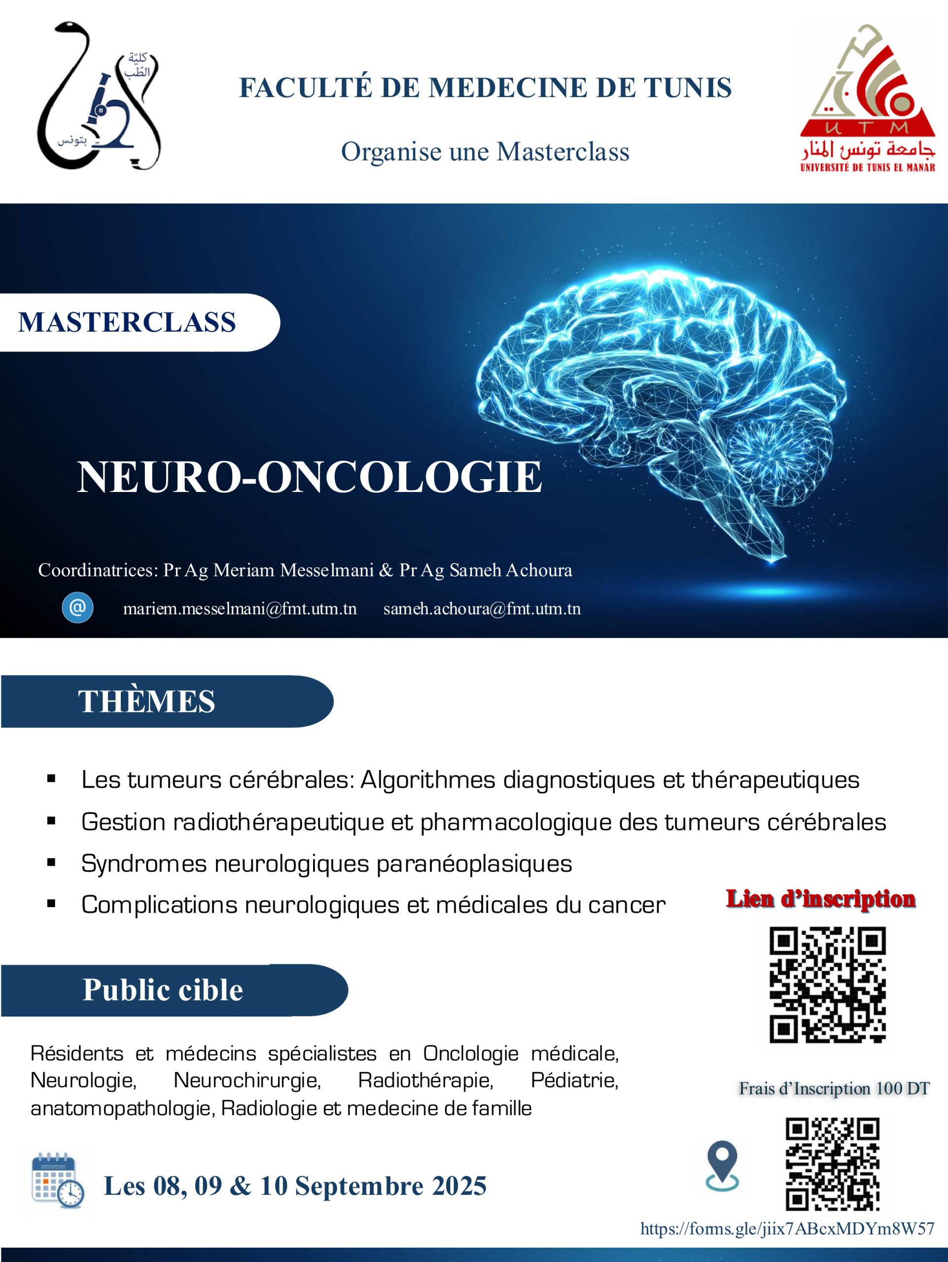 La faculté de médecine de Tunis organise une masterclass intitulée « Neuro-oncologie ».