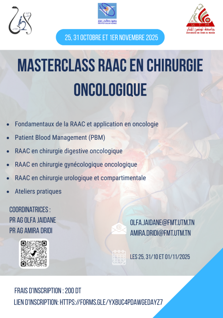 La faculté de médecine de Tunis organise une masterclass intitulée : « Réhabilitation améliorée après chirurgie »