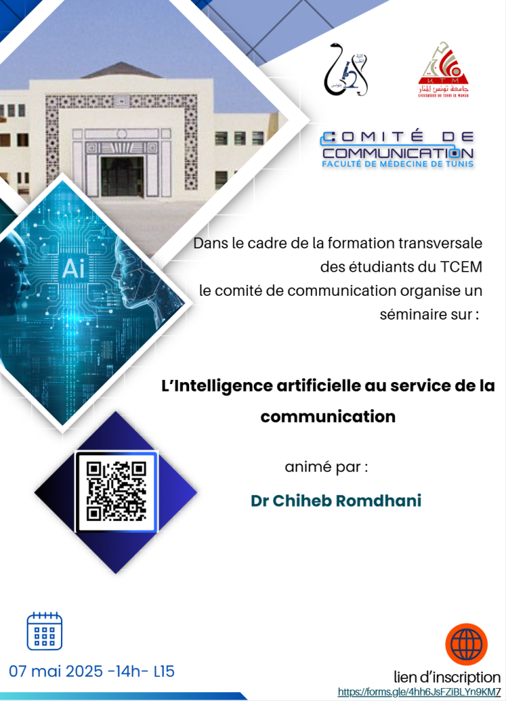 02 Mai Séminaire de formation transversale des TCEM sur la communication à l’ère de l’IA Publié à 11:35h in Actualités, Evènement, Formation en communication TCEM par FMT Share